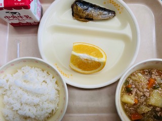 今日の給食は『ごはん、牛乳、いわしの梅煮、じゃがいものそぼろ煮、はっさく(生)』です。とても美味しかったです。ごちそうさまでした!