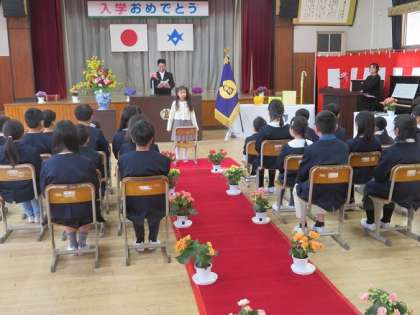 児童代表の歓迎の言葉に加え、「君はカワセミを見たか」を全校で合唱し、とても温かな雰囲気の入学式となりました。