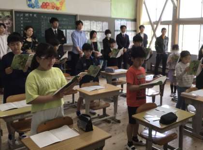 3・4年生は、「こわれた千の楽器」の音読の授業です。