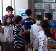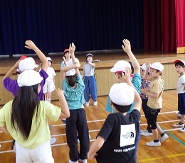 元城小学校は、全校児童数が242人の小学校です。はじめ、子ども達は緊張気味でしたが、元城小学校の友達に温かく迎えてもらって緊張もほぐれ、大人数ならではの遊びをしたり学校探検をしたりして、楽しく過ごすことができました。
