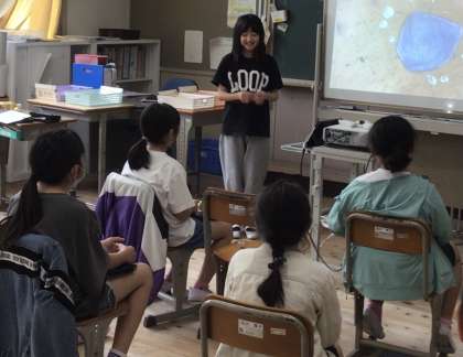 5・6年生は図画工作で、色をつけた水に、違う色の絵の具を加えた時に見つけた「自分が綺麗と思った瞬間」について紹介しました。