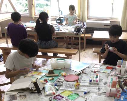 「地球に乗ったカメ」「チーズバーガー」「缶コーラ」等、素材の色と形から、とてもユニークな作品がたくさんできていました。