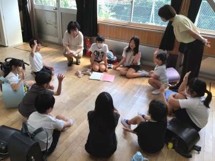夏休み明けの登下校について、並び方や町の人へのあいさつ、防犯ブザーの動作状況等を振り返りました。「前の人に遅れないように一列で歩く」「防犯ブザーの電池交換」と、早速今日から改善するポイントも確認できました。
