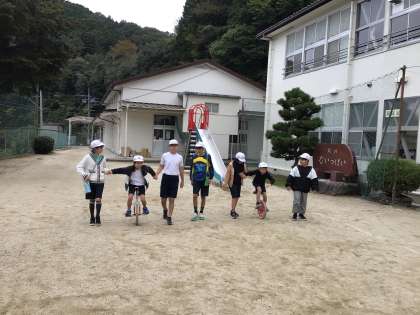 2年生では、朝の「学級タイム」の時間で、一輪車練習が始まっています。