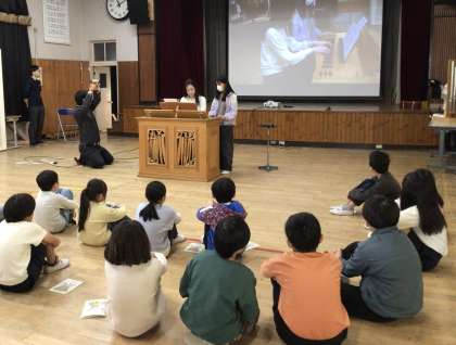豊田市コンサートホールからポジティフオルガン(移動できる小型のパイプオルガン)をお持ちいただき、コンサートを開きました。奏者の方の演奏は、電子オルガンの音とは一味違い、空気の流れが奏でる優しくも深みのある音色で、とても素敵でした。その後、ポジティフオルガンの伴奏での全校合唱や、オルガンの中を見せてもらう時間もあり、子ども達にとって貴重な体験となりました。