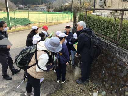 総合的な学習の時間で「塩の道」を探究している3・4年生が、追分に至る手前の「塩の道」の様子を調べるために、見学に行きました。博物館から3名の講師の方が来てくださり、大島地区から則定地区までの「塩の道」を歩きながら、解説してくださいました。