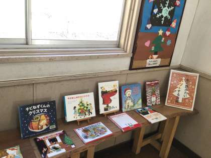 階段の図書館コーナーが新しくなりました。今回は「冬に読みたいホットするお話」です。寒くなるこれからの季節に、暖かな部屋で読みたくなる本ばかりです。冬休みの読書におすすめですね。