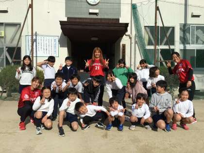 トヨタレッドテリアーズの現役選手を招いて、投げ方教室がありました。