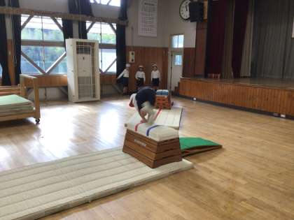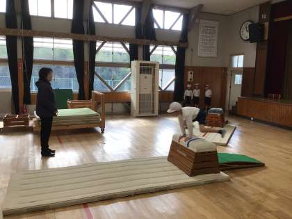 2年生の体育は、跳び箱に取り組んでいます。跳び箱やマットも、みんなで協力して準備しました。今日は低い高さでそれぞれができる跳び方で跳びました。普通の縦跳びや横跳びにも挑戦しました。さっそく最初の跳躍から、綺麗に成功する子もいました。これからも、レベルアップを目指して練習に取り組んでいきます。