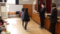 校長先生から「師走(しわす)」の意味や校区内の国道の様子から、「安全に気を付けて、元気に笑顔で冬休みを送れるように」とのお話がありました。冬休み中は、家族との時間を大切にしながら年末年始を過ごせるといいですね。