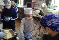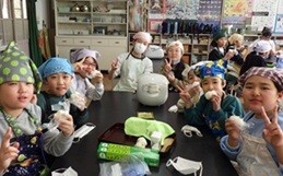 学習発表会での来賓の皆さんや保護者の皆さんへのお土産の、「追分おむすび」の試作会を行いました。この「追分おむすび」のお米は、5・6年生が田植えや稲刈りの体験をさせていただいた田んぼで収穫されたお米を分けていただいたものです。中に入れる梅干しは、2年生が作り方を探究して完成に至りました。お塩は、3・4年生が探究してきた「塩の道」にちなんだ「足助の塩」を使用します。試作会では、作る手順を確認し、出来上がった「試作品」をみんなで味見しました。とてもおいしくできました。学習発表会当日は、今日よりたくさんの「追分おむすび」を作ります。全校みんなで力を合わせて頑張ります。
