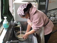 6時間目に、学習発表会を見に来てくれた家族や来賓に方々へのお土産にする「追分おむすび」のお米の準備を、5・6年生がやってくれました。「一粒も無駄にしないように…」と、慎重に計量してから米とぎをして、炊飯器にセットしました。「炊きあがったご飯がべちゃっとしないように…」と水加減にも細心の注意を払っていました。家庭科の学習経験を生かして、スムーズに進めることができました。きっと明日は、ホカホカに炊き上がったご飯で、「追分おむすび」づくりに全校で取り組めることと思います。5・6年生が、「縁の下の力持ち」として頑張ってくれました。