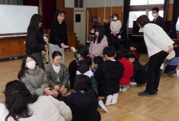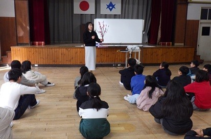 講話は、2年担任の先生のお話でした。「桃の花」の構造、「ひし餅」の意味や「君が代」の歌詞のお話から、身の回りの何気ない「もの」「こと」について、実物に触れながら見つめなおす機会となりました。