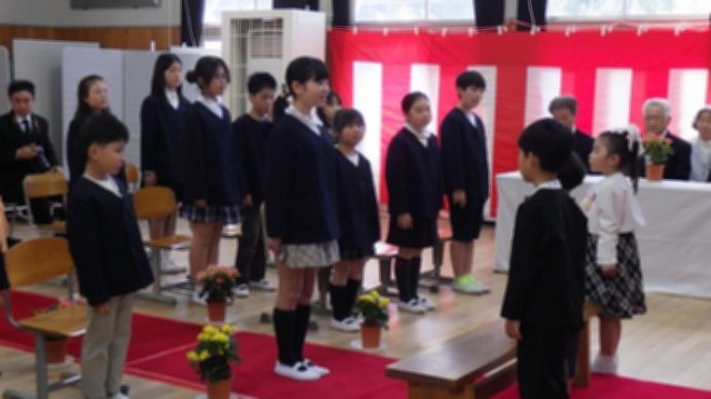 新1年生は、自分の名前が呼ばれると、「はい」と大きな声で元気よく返事をする姿が立派でした。