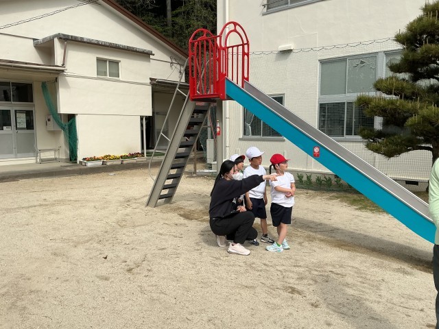 4月14日(火)、1年生では、遊具の安全な使い方について学んでいました。