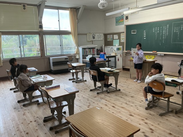 3.4年生では、国語科の物語文「すいせんのラッパ」で、好きな場面の音読発表をしていました。
