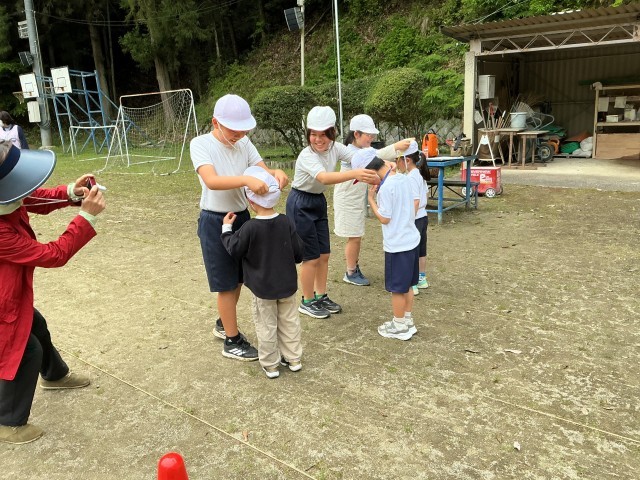 最後にプレゼントをもらい、嬉しそうな顔の1年生でした。高学年のみなさん、盛り上げてくれて本当にありがとう。