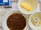 本日の給食は、『豊田めん、牛乳、ミートソースかけ、オムレツ、ツナサラダ』です。と...