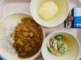 本日の給食は、『カレーライス、牛乳、パプリカサラダ、りんご』です。とても美味しか...