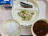 本日の給食は、『ごはん、牛乳、いわしのしょうが煮、大豆サラダ、豚汁』です。とても...
