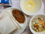 本日の給食は、『スライスパン、牛乳、スラッピージョー、パイン、ポトフ』です。とて...