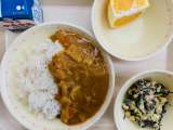本日の給食は、『麦ごはん、牛乳、カレーライス、健康サラダ、はっさく』です。とても...