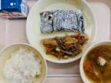 本日の給食は、『ごはん、牛乳、さばの銀紙焼き、五目きんぴら、かしわ汁』です。とて...
