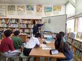 子ども園の園長先生が1・2年生の授業を見に来てくれました