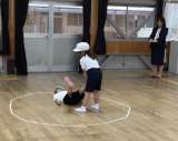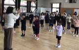 5時間目の体育の授業を見に来てくれました。 体を使ったジャンケンゲームや「きゅう...