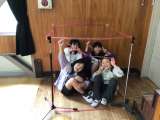 5年生は算数の「体積」の学習で、ビニール紐とマイクスタンドで1立方メートルのスペ...