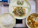 今日の給食は『麦ごはん、牛乳、野菜入りしゅうまい、ビビンバ丼・みそだれ、中華五目...