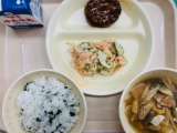 今日の給食は『ごはん、牛乳、照り焼きハンバーグ、ツナマヨあえ、けんちん汁』です。...