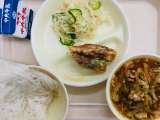本日の給食は、『ごはん、牛乳、ショウロンポウ、チンジャオロース、中華五目スープ』...