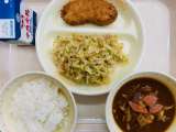 本日の献立は『白ごはん、備蓄用レトルトカレー、牛乳』でした。本日は、台風の影響で...