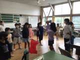 1年生もトーンチャイムを持って、練習をしています。上級生がていねいに教えています...