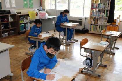 6年生 全国学力学習状況調査の様子です。
