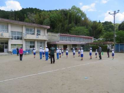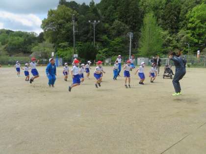 全校児童 オリンピアンによる「走り方教室」の様子です。