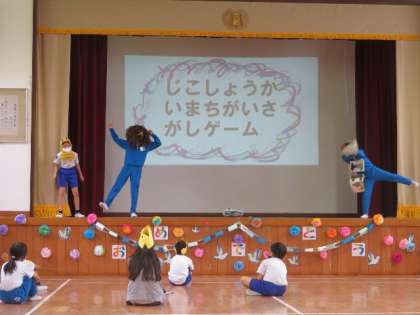 全校児童 1年生を迎える会の様子です。