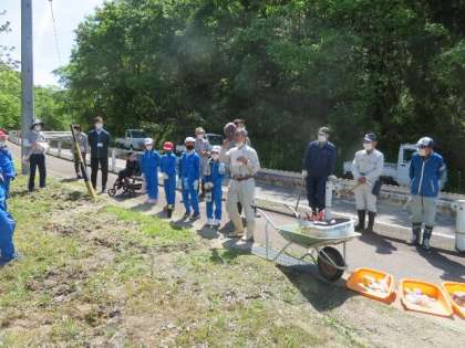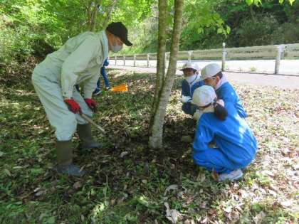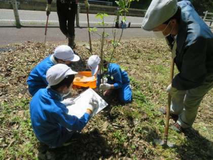 全校児童 ヤマボウシ大作戦の様子です。