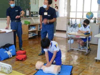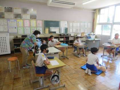 5・6年生 ひまわり学級 体育科 応急手当講習の様子です。