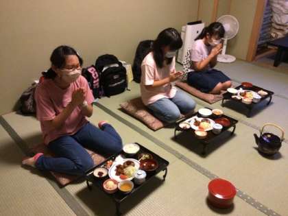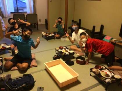 夕食を各部屋で食べました。 メニューは唐揚げとハンバーグです。
