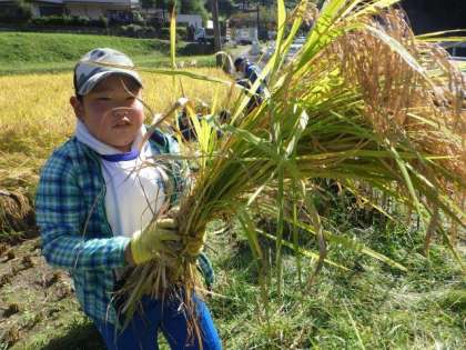5・6年生 稲刈り体験の様子です。