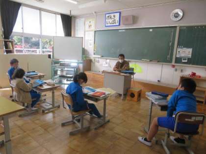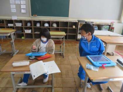 課題を終えた子は、タブレットを使って自分のペースで学習を進めています。