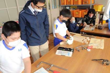 地域講師からビー玉で遊べるゲームの作り方を学んでいます。
