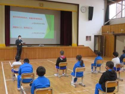 校長先生のお話を聞いて、「みんなで助け合って生活しよう」「お互いのよいところを見つけよう」という気持ちを高めることができました。