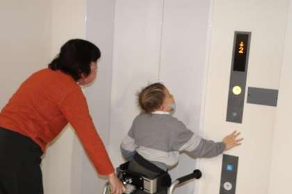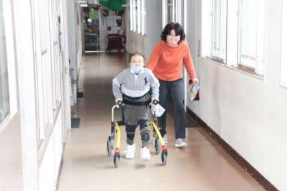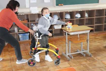 歩行器を使って、歩行訓練を行いました。とても力強く歩くことができました。