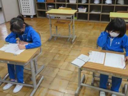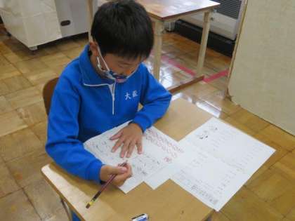 1月の書き初め大会に向けて、書き初めの練習を行いました。