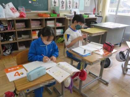わり算の筆算について学習しました。それぞれに集中して練習問題に取り組んでいました。解き方がしっかりと身についている様子でした。