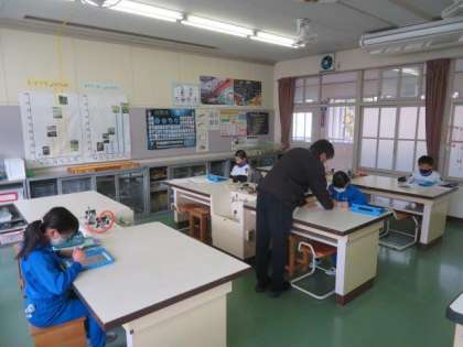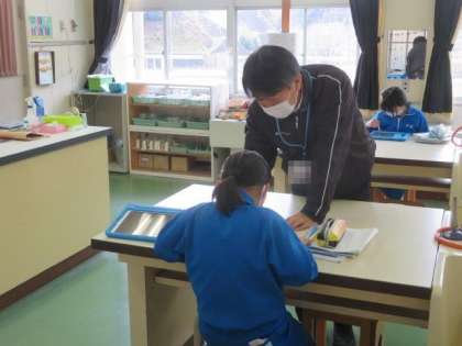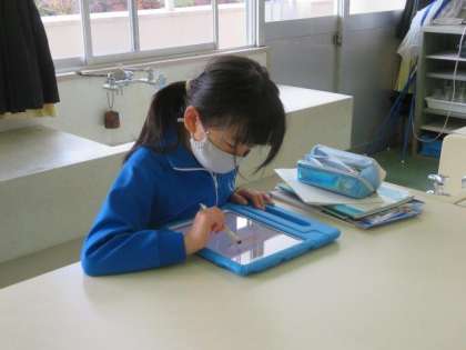 かけ算の筆算について学習しました。課題を終えた子は、学習用タブレットを使って、自分のペースで復習を行っていました。