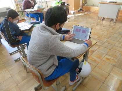 日本国憲法についての学習です。学習用タブレットを活用し、自分が総理大臣になったつもりで、コロナ禍において、どのような政策ならば認められるのかを、憲法の条文に照らし合わせて考えました。